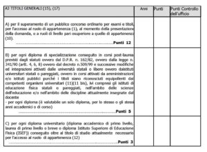 • il punteggio per i figli spetta sempre. Sono attribuiti punti 5 per ogni figlio di età inferiore a sei anni e punti 4 per per ogni figlio di età superiore ai sei anni, ma che non abbia superato il diciottesimo anno di età;