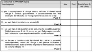 Le esigenze di famiglia, nel caso delle graduatorie interne, sono considerate come esigenze di non allontanamento dalla scuola/comune di titolarità e, stando alla nota 7 alla Tabella A succitata, si valutano nella maniera di seguito indicata: